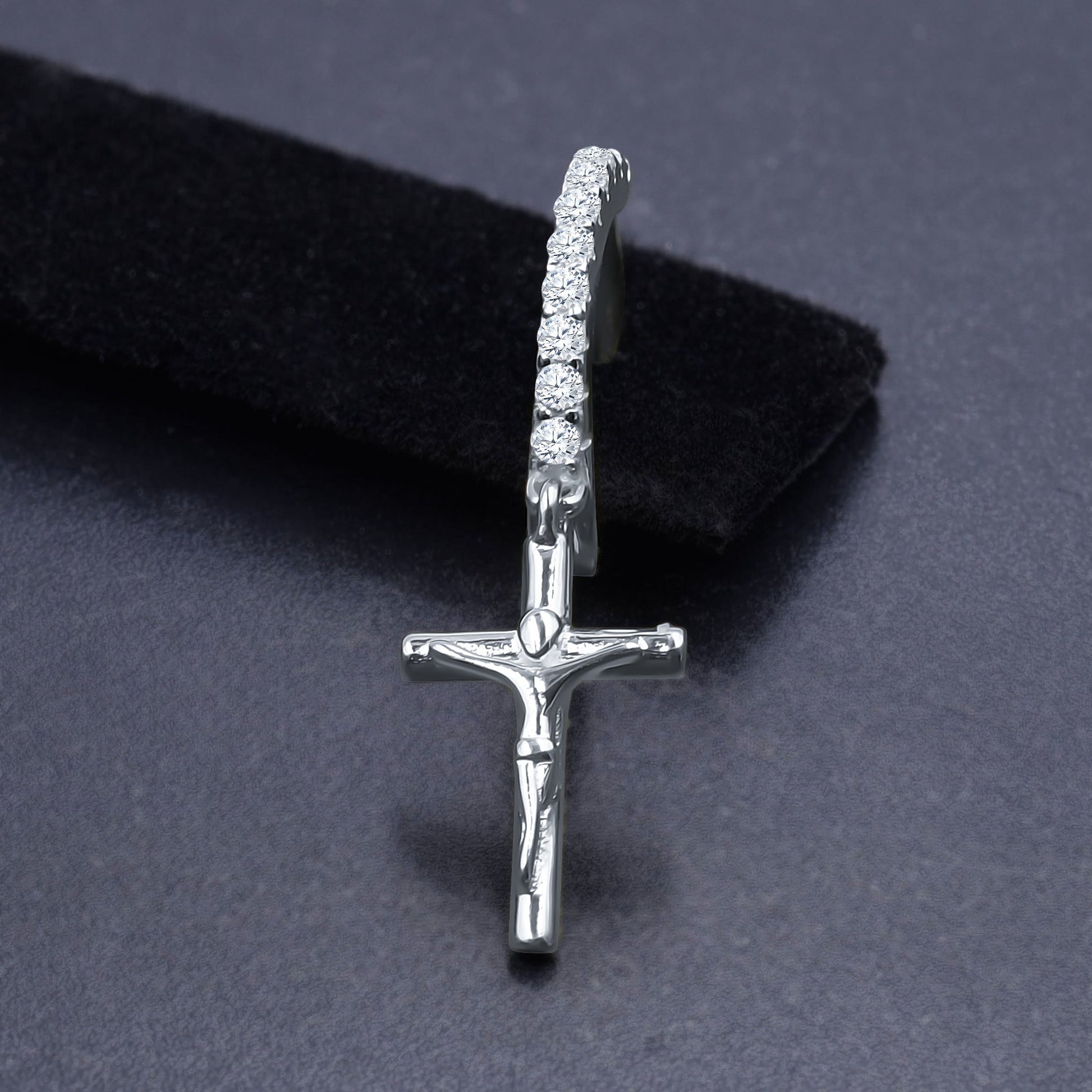 The Crucifixus Silver Earrings are a meaningful expression of devotion, beautifully designed to symbolize the inseparable connection between Christ and His cross. Crafted in polished 925 sterling silver and adorned with Grade AAA cubic zirconia, these earrings sparkle with refined elegance while carrying deep spiritual significance.