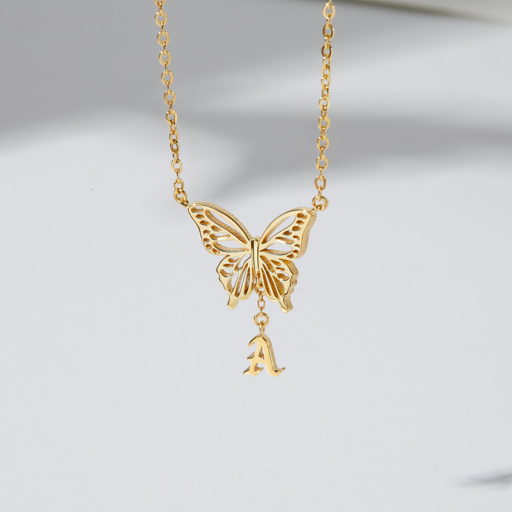 Say it in style with the Custom Initial Butterfly Necklace — a timeless piece that’s as unique as you are. Featuring a delicate butterfly charm paired with your chosen initial, this necklace brings elegance and personal meaning together in one beautiful accessory.