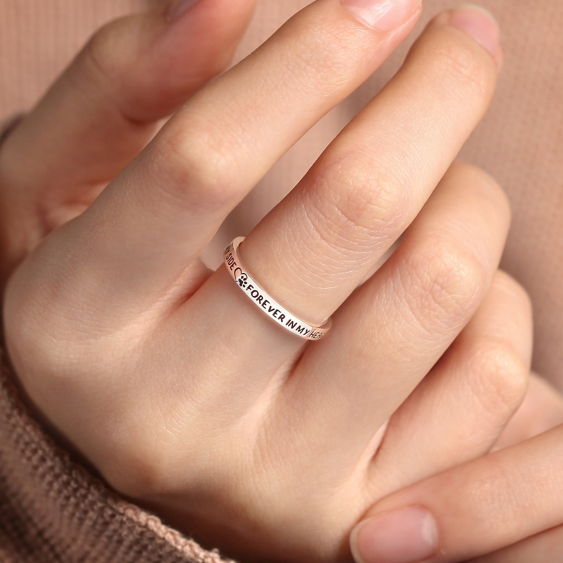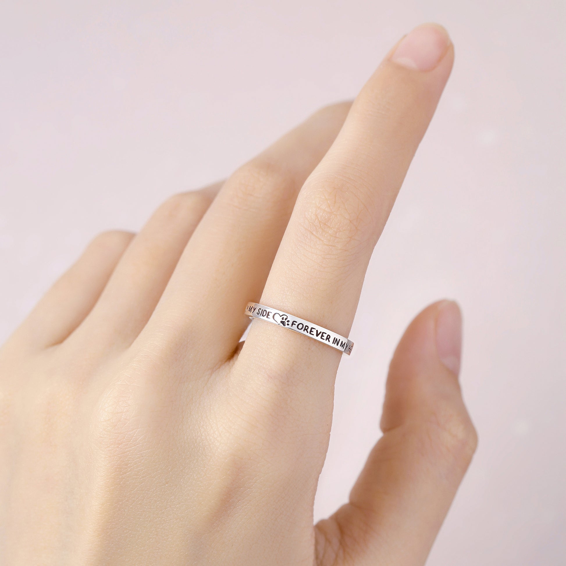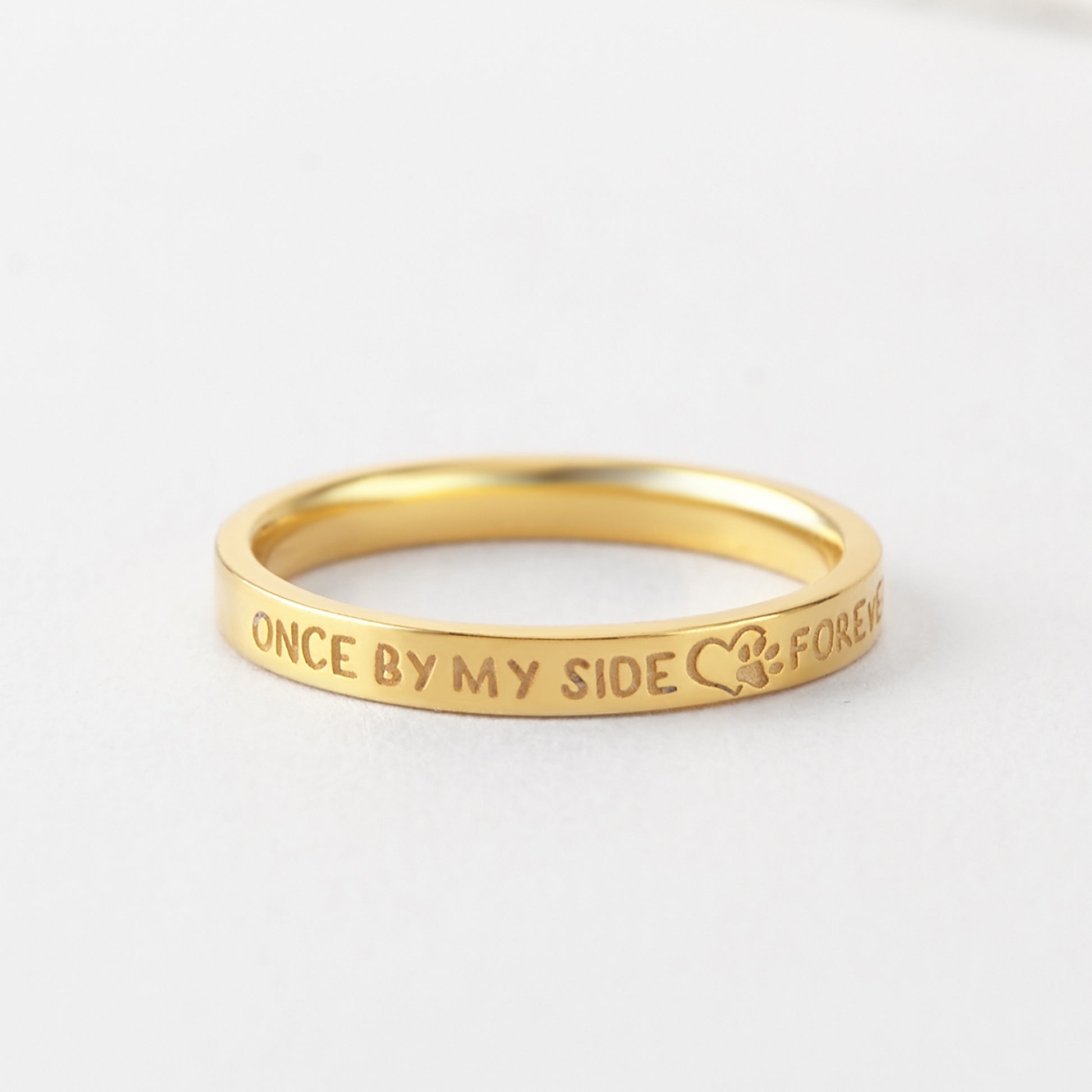 Losing a pet means losing a family member, and the Pet Memorial Ring is a beautiful way to honor their memory. Engraved with the default phrase “Once by my side, forever in my heart” and a paw print, this ring can also be personalized with your pet’s name or a special message.